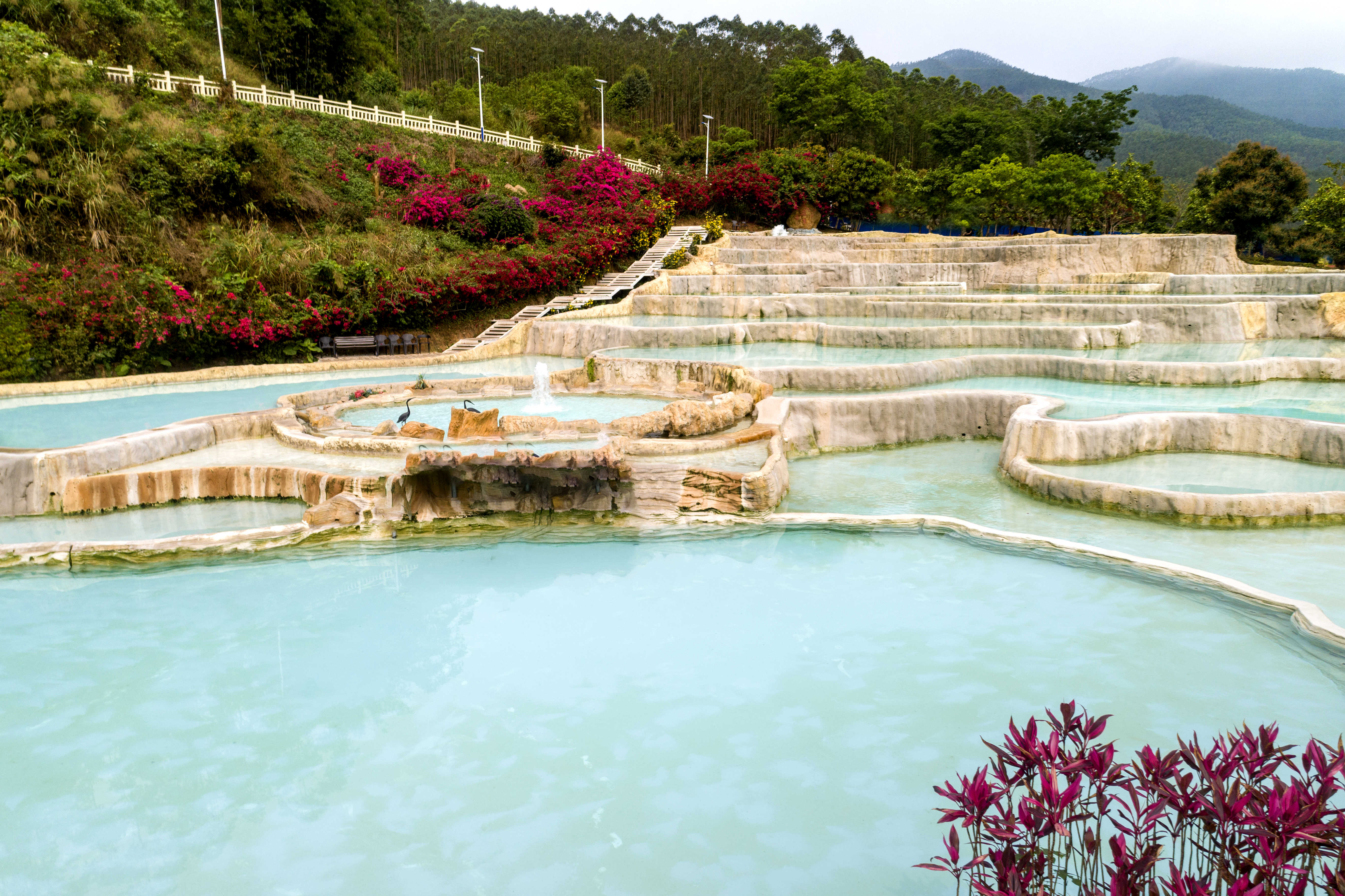 位于上思县城北郊,距县城中心不足5千米。景区三面环山,地下温泉资源丰富,是国内首个可饮可浴的矿泉水温泉。景区内建有温泉池、房车营地、温泉民宿,还有大面积的热带水果采摘园。特别是叠瀑,依山而建,呈梯田状排列,水池的碳酸钙沉积呈现出色彩斑斓的景观,有“小黄龙”之美誉。