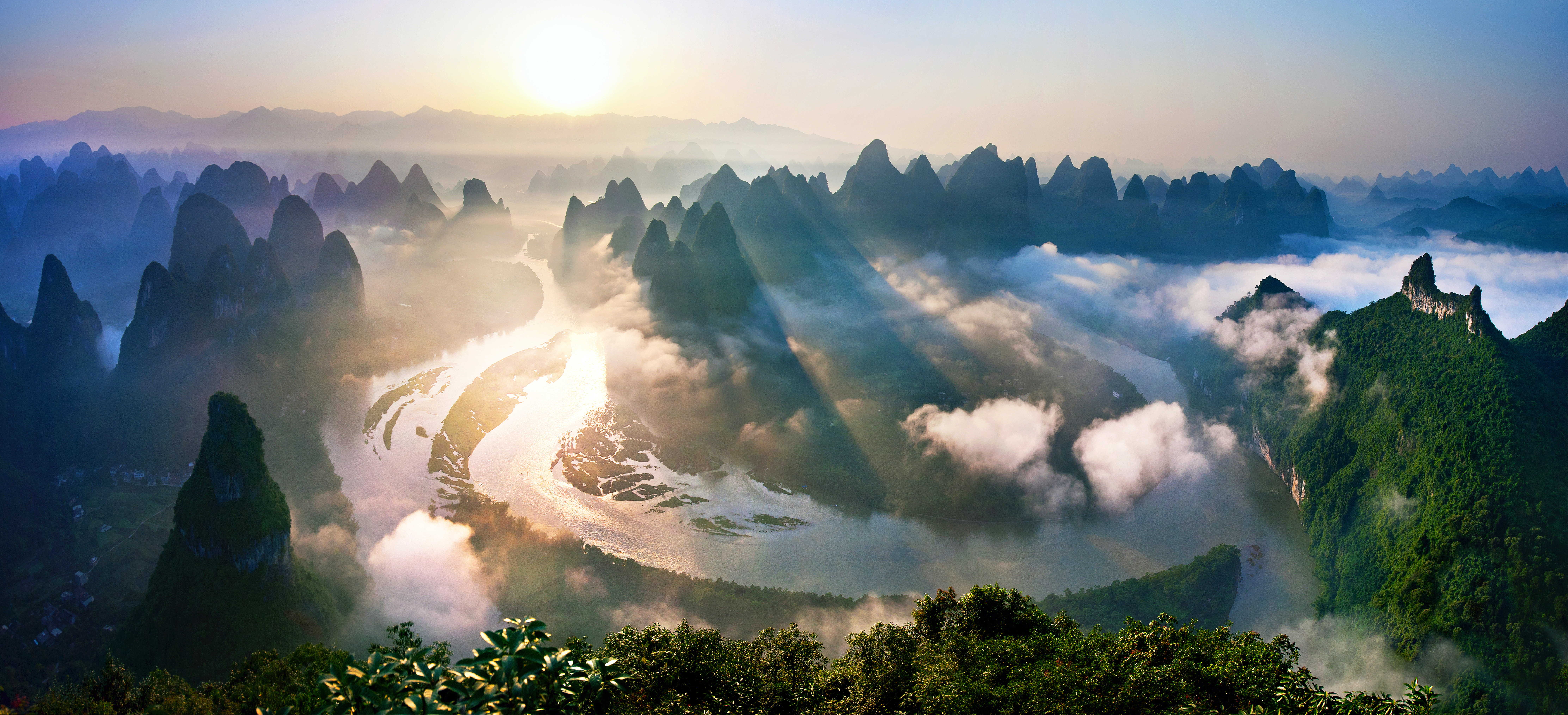 桂林风景精华所在,为国家 5A 级旅游景区和国家重点风景名胜区。漓江自桂林至阳朔共83千米水程,是广西东北部喀斯特地形发育最典型的地段,是世界上规模最大、风景最美的岩溶山水游览区,兼有“山青、水秀、洞奇、石美”四绝,其主要景点有杨堤烟雨、滚石仙境、九马画山、象鼻山、兴坪佳境等。
