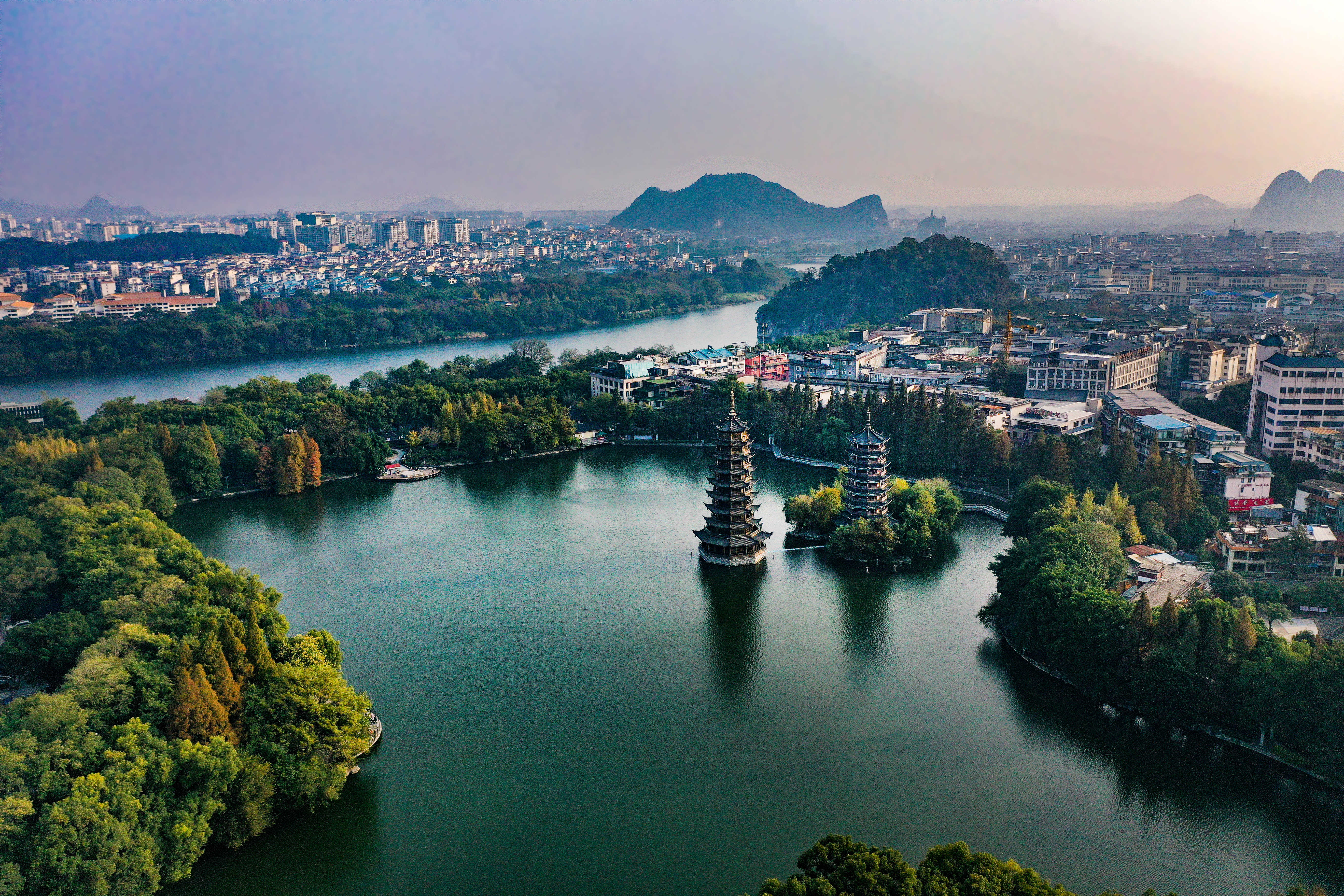 指由漓江、桃花江、杉湖、榕湖、桂湖、木龙湖所构成的桂林环城水系,是桂林城市中心最优美的环城风景带,它真实地体现了“千峰环野立,一水抱城流”的美妙景致。