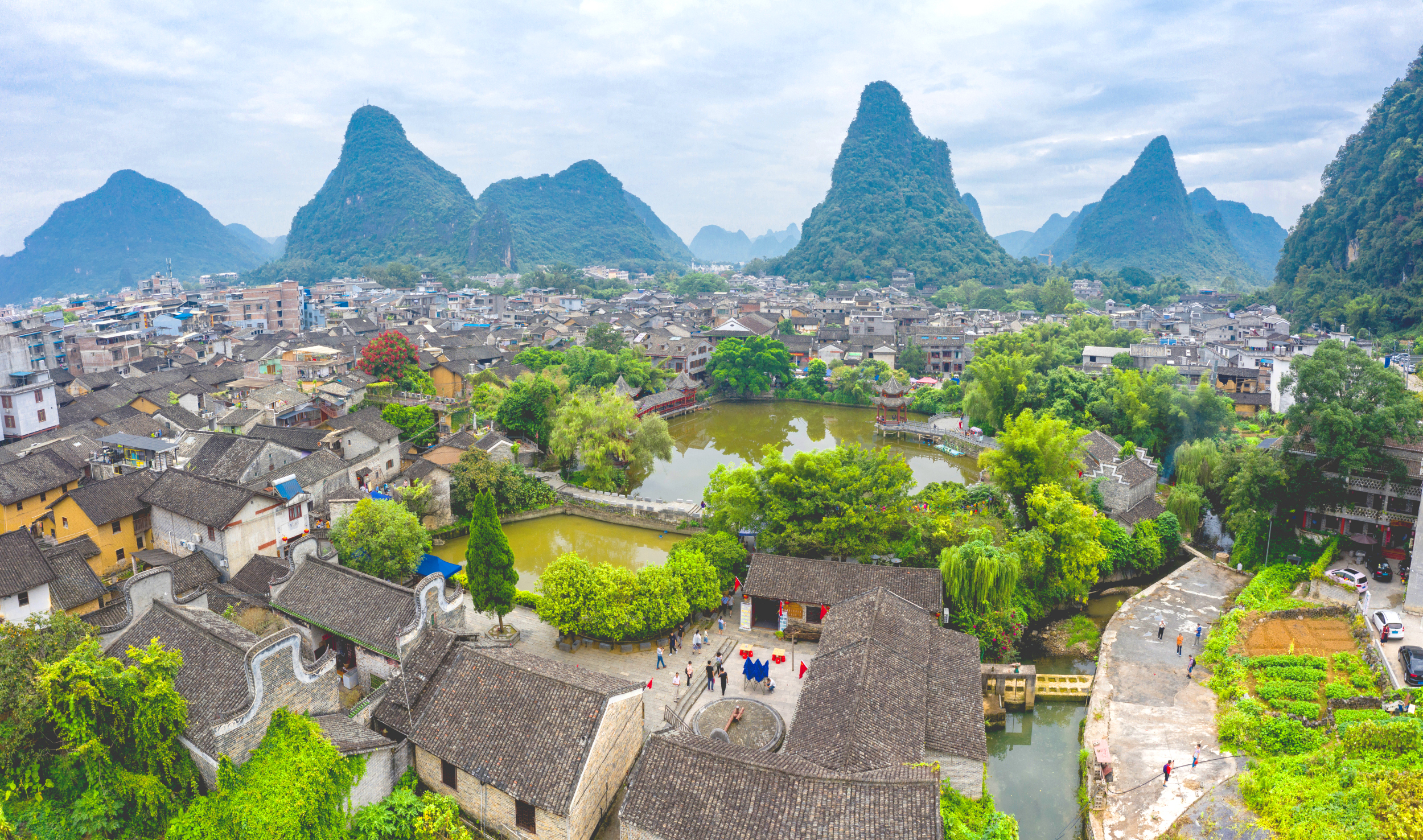 是一座岭南文化与峰丛山水完美融合的千年古镇,国家 5A 级旅游景区。景区内的小桥流水、参天古榕、青石古街和楹联牌匾被称作“黄姚四绝”。古镇内有 300 多间明清宅院,青砖黛瓦,大街小巷均用青石板铺砌而成,独特的景色使它成为《茶是故乡浓》《酒是故乡醇》《春蚕织梦》《面纱》《英雄虎胆》等众多影视剧的外景拍摄地