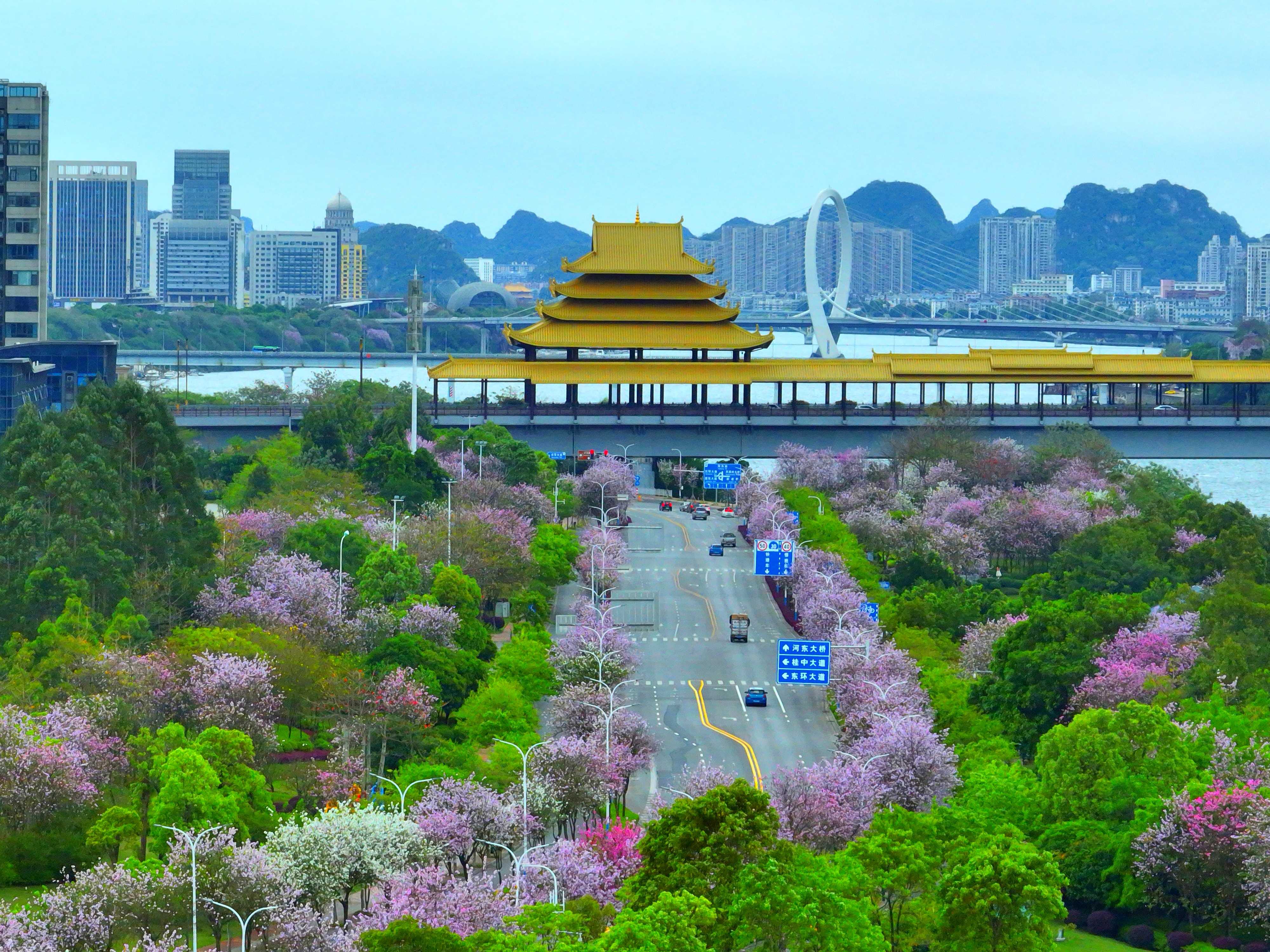 起于河东大桥东端桥头,沿柳江边蜿蜒约 30 千米到达静兰大桥西头,路旁种植紫荆花,是柳州最长的紫荆花大道。沿途有莲花山、龙壁回澜、百年龙眼林、静兰人工沙滩等景点,还有 10 余座观景桥,桥护栏为仿古材料,刻有众多骑行图案。