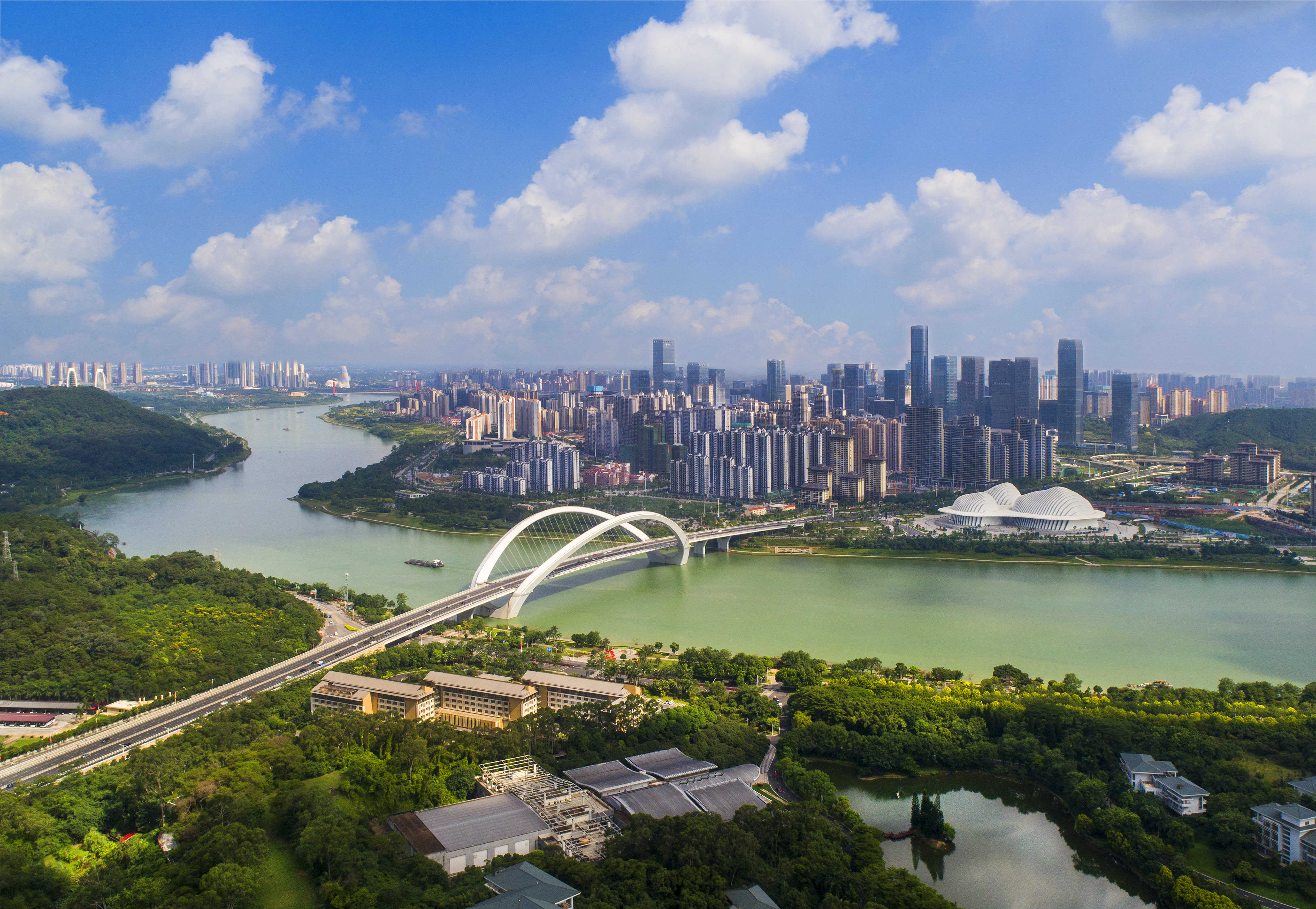 北起南宁市青山路,上跨邕江水道,南接平乐大道。2009 年 9 月建成通车。是世界首座大跨径曲线梁非对称外倾拱桥,全长 1315米,桥面为双向六车道的城市主干路。大桥桥型独特,两侧肋拱均向外倾斜,似一只展翅的蝴蝶,夜晚在灯光点缀下显得美轮美奂,是南宁市的地标建筑之一。