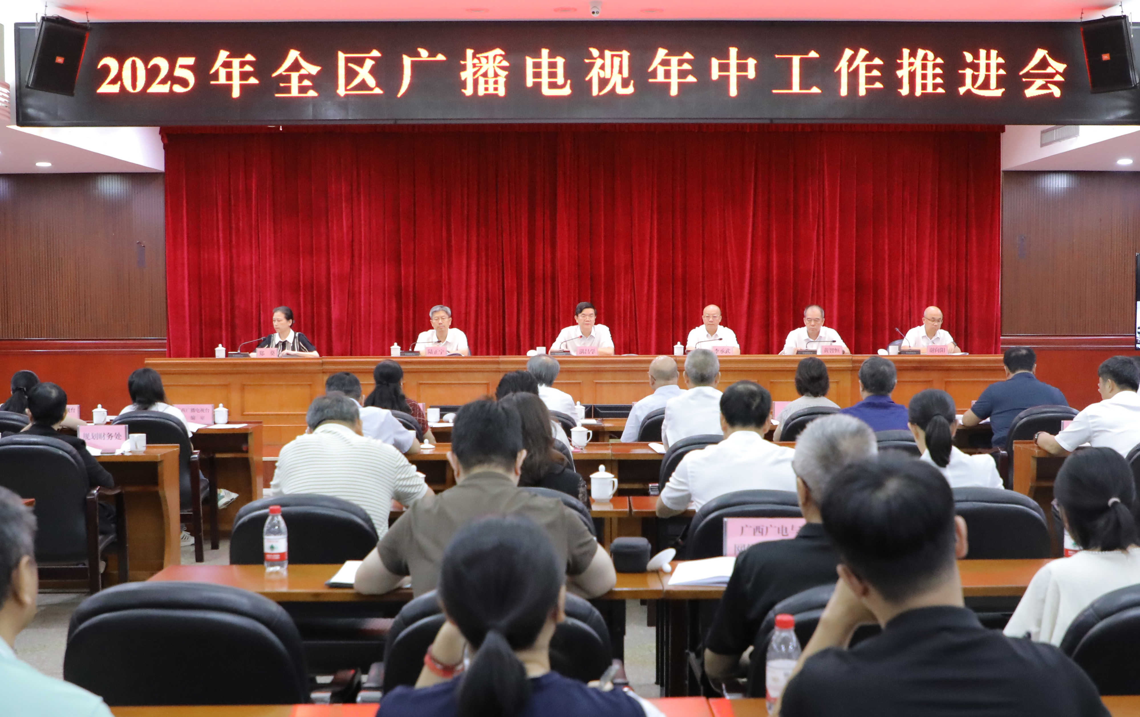 会议要求,做好今年下半年工作,要精准分析形势,积极应对问题和挑战,聚焦工作重点,锚定工作方向,创新为魂,推动全区广播电视和网络视听发展再上新台阶。一是聚焦舆论引导能力提升,推动《壮美之路》等创新理论节目栏目精品提档升级,围绕纪念中国人民抗日战争暨世界反法西斯战争胜利80周年等重要节点,统筹规划重点主题宣传,聚集优势资源,做优做强广电新媒体,推动大屏小屏相互赋能、长短视频相互协同,构建全媒体传播矩阵。二是聚焦视听精品生产创作,加强对电视剧《阵地》、纪录片《甘蔗的旅途》和音乐广播剧《山歌好比春江水》等重大题材精品跟踪指导服务,配合中央广播电视总台做好纪录片《平陆运河》跟踪服务工作,持续做好视听精品的扶持、评议和推优,积极打造微短剧新业态文化品牌,不断丰富优化视听内容和服务供给。三是聚焦健全公共服务体系,切实抓好广电公共服务项目建设,完善试点市的县乡村三级广播电视公共服务网络,搭建广电视听共享平台,丰富基层播出机构本地化内容供给,继续争取省级财政统一购买特殊困难群体的有线电视服务,积极推进应急广播有关项目建设实施和优化升级,提升应急广播服务防汛救灾作用和综合服务效能。四是聚焦大视听产业转型升级,编制完成本部门“十五五”发展规划,出台推动大视听产业发展政策文件,加强广电视听产业发展规划和布局,年内推动完成新开播的超高清频道在广西落地进网。积极筹办“人工智能+广播电视和网络视听创新应用大赛”等赛事,力争引领推动人工智能技术深度融入广电视听采集、创作、传播等全链条环节,提升行业智能化水平。五是聚焦规范行业发展秩序,巩固“双治理”成效,引导酒店结合以旧换新的政策完成治理,并推进高清信号升级,积极推进超高清插入式微型机顶盒批量部署工作。提升安全播出保障水平,强化频率频道优化,力争年底全区县级广播电视播出机构电视频道高清化率达100%。六是聚焦融合传播效能提升,做好视听周总结、成果转化和跟踪问效,并积极谋划第八届中国—东盟视听周。实施视听东盟国际传播工程,建立广西广电视听国际传播重点项目库并择优扶持。创新业态传播渠道,推动中国视听节目在“爱优芒腾”等头部海外平台以及Youtube、Tiktok等海外平台落地播出。积极推动与越南等东盟国家深入合作,建立常态化沟通机制。七是聚焦党建引领和人才培育,巩固深入贯彻中央八项规定精神学习教育成果,推动高质量党建,加强人才队伍培育和谋划,提前布局人工智能技术应用、网络微短剧等新兴领域人才储备计划,让实干成为全区广电系统干部身上最鲜明的特征。